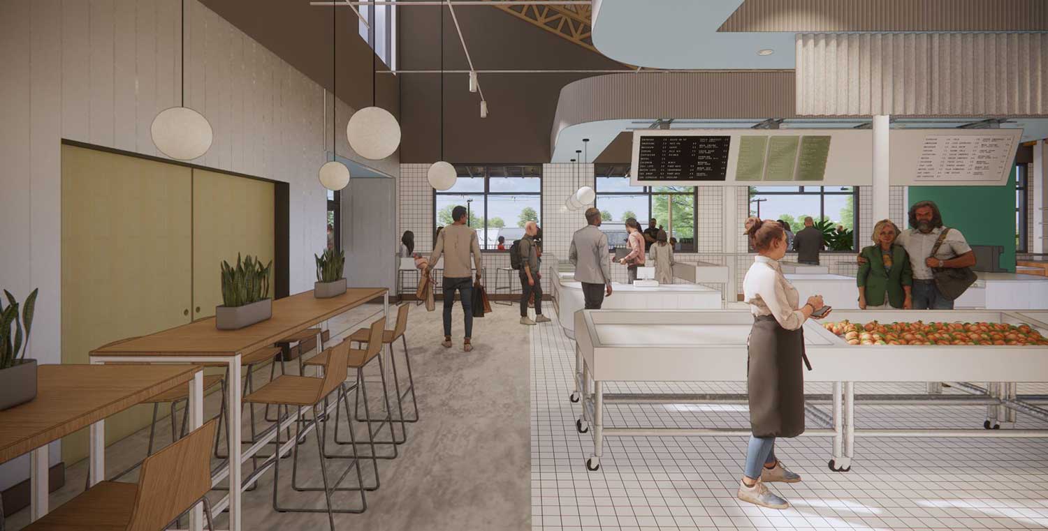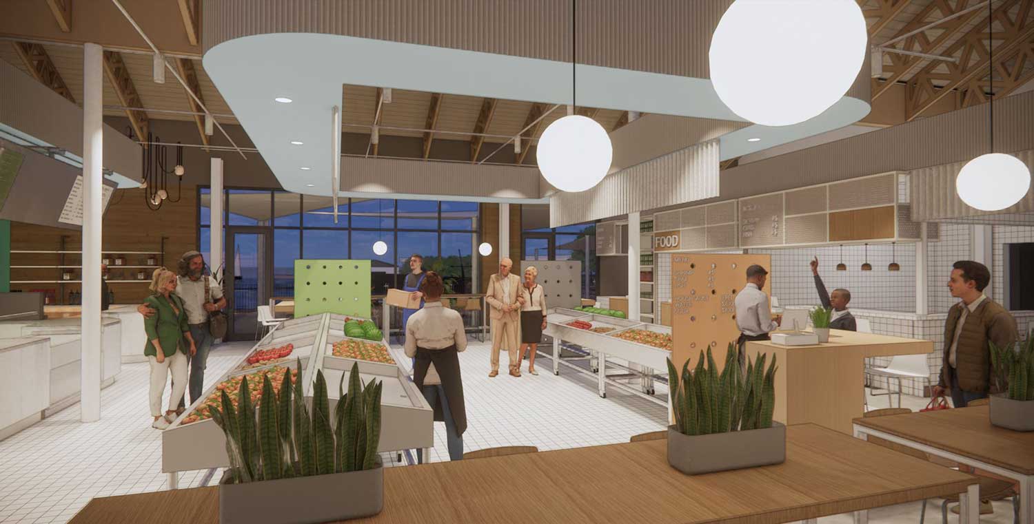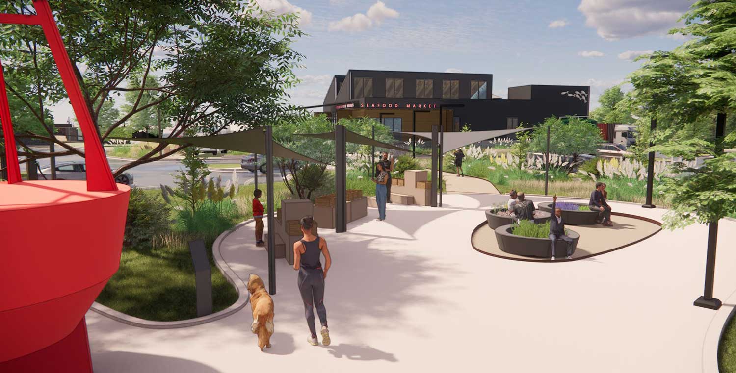 A part of the broader Marshall-Ridley Choice Neighborhood Initiative, the market will serve the city’s historically Black southeast neighborhoods, commonly known as the East End. The project aims to celebrate the city’s seafood industry while offering fresh food access, economic opportunity, and a dynamic “third place” for residents and visitors.