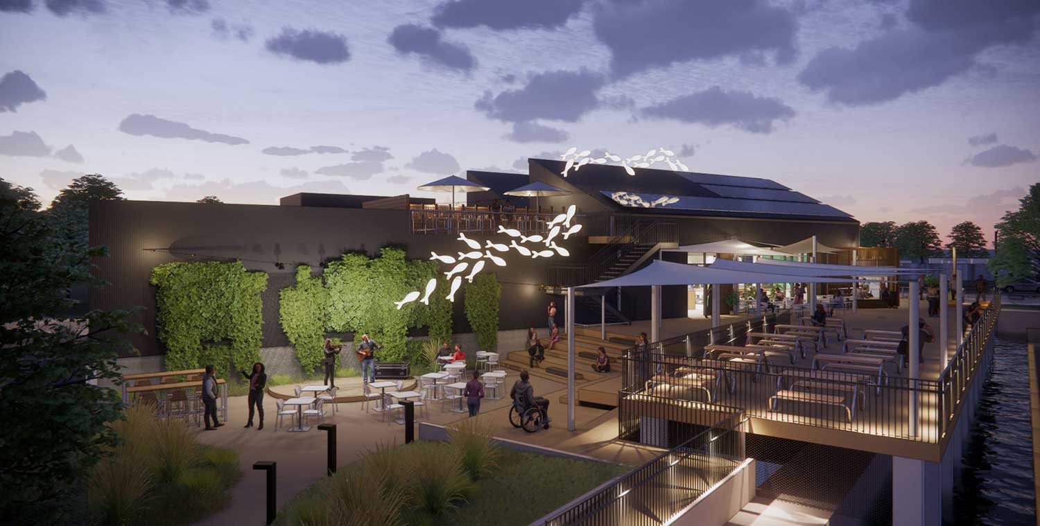 The Newport News Seafood Market is planned as a civic and cultural anchor for the City of Newport News. Designed by Work Program Architects (WPA), the 7,200-square-foot building and its surrounding outdoor spaces will transform a city-owned former parking lot at the southern tip of Newport News into a vibrant community hub.