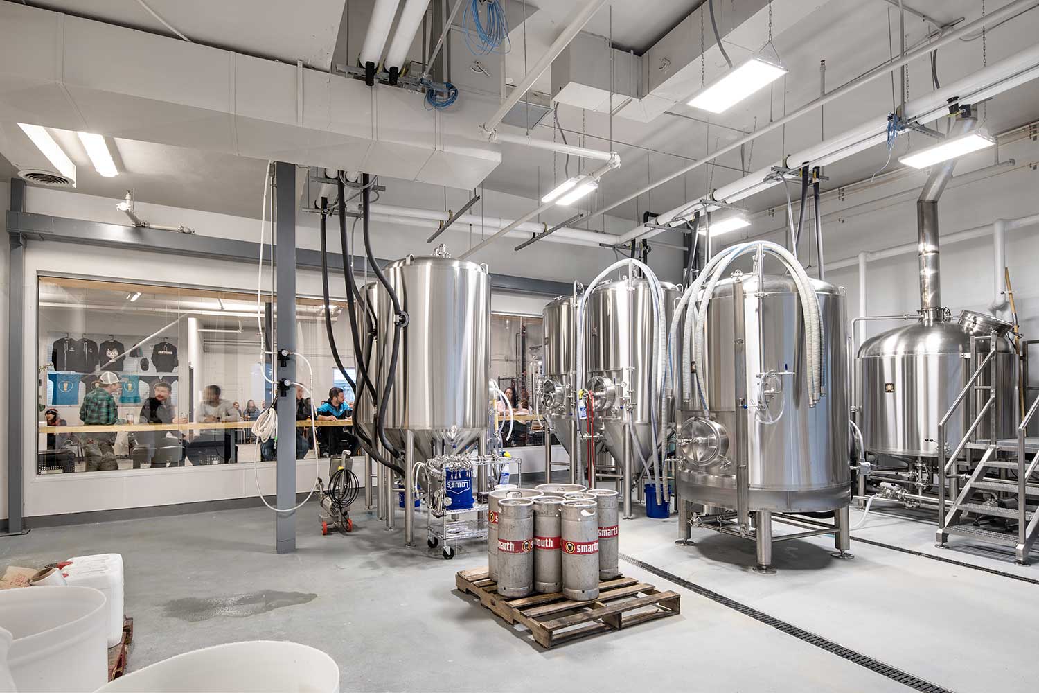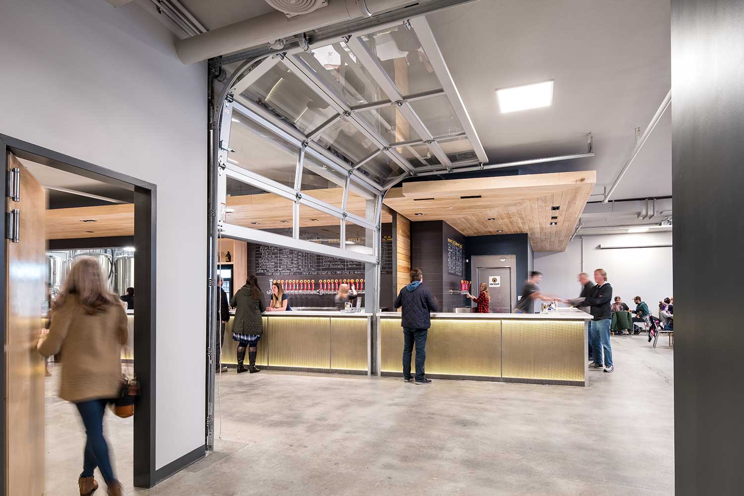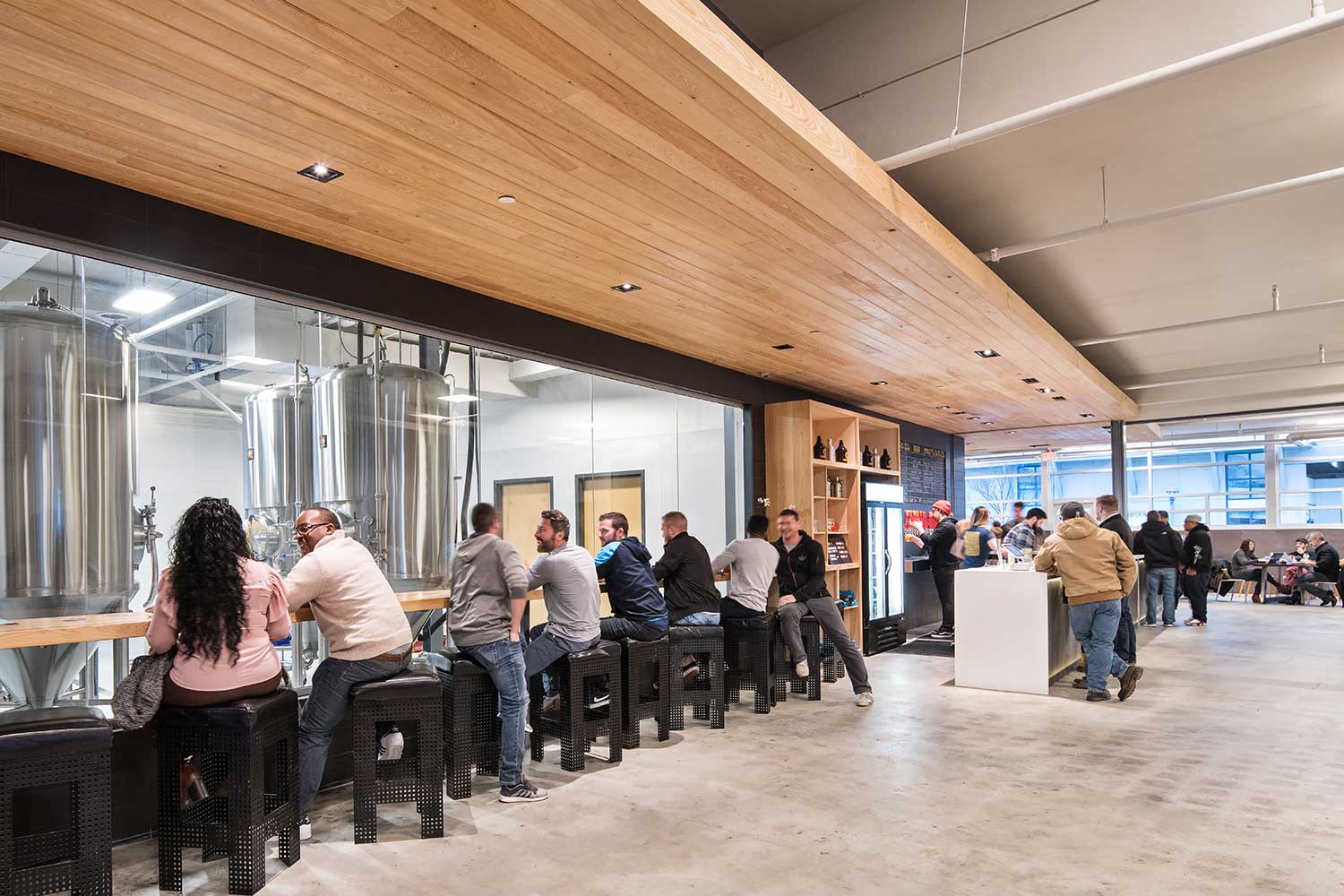 The primary design challenge was organizing the space to accommodate both a small-batch 10-barrel brewery systemand a large tasting room that could be divided for private meetings and events. This flexibility was essential for hosting simultaneous activities without disrupting normal operations.