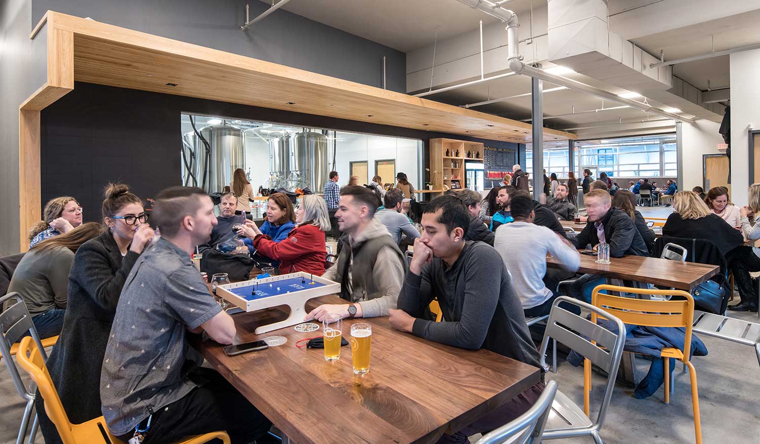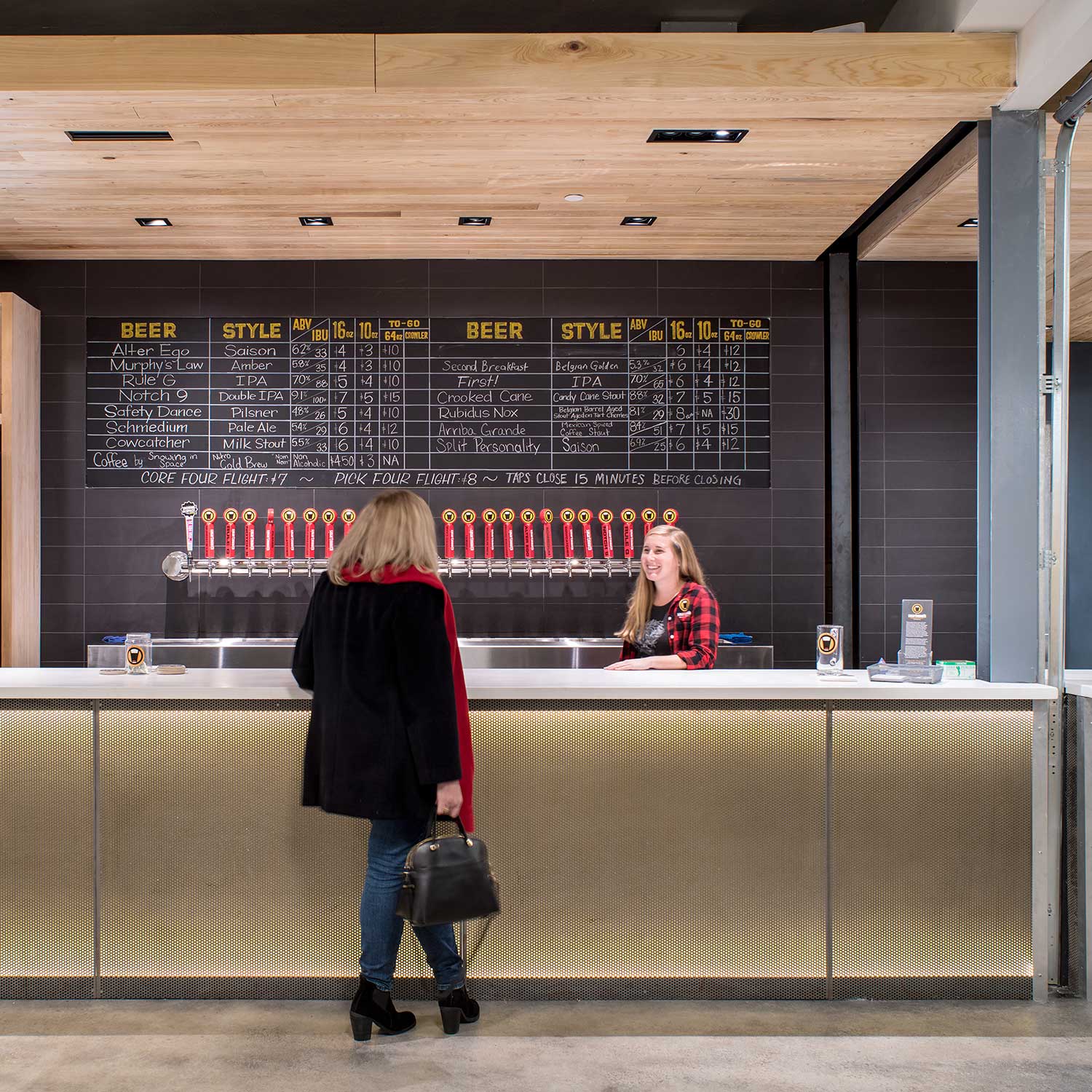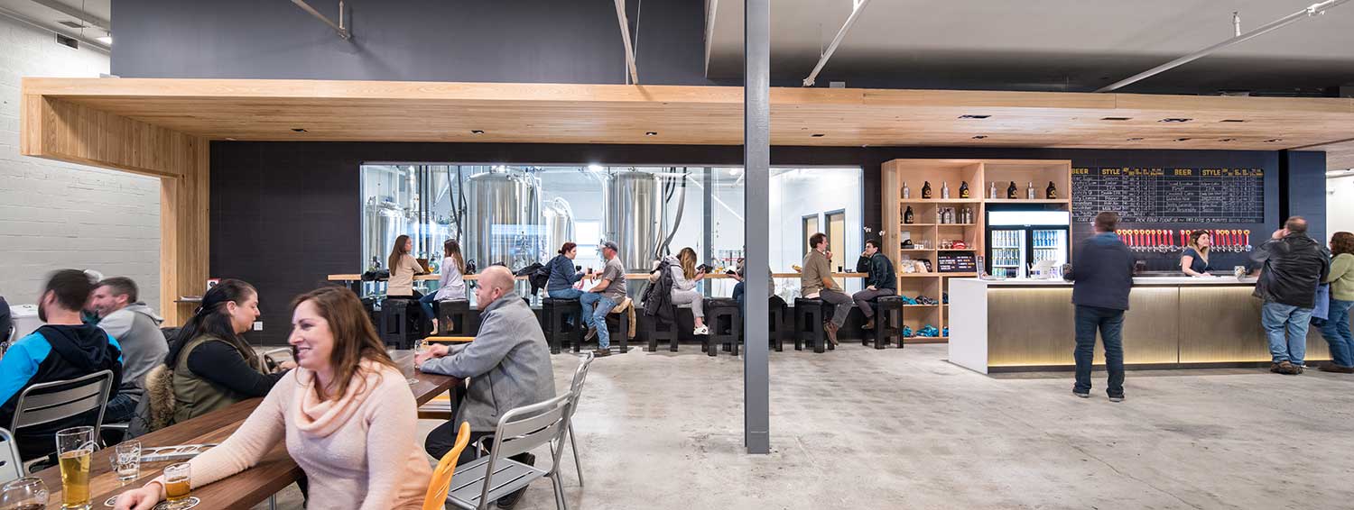The primary design challenge was organizing the space to accommodate both a small-batch 10-barrel brewery systemand a large tasting room that could be divided for private meetings and events. This flexibility was essential for hosting simultaneous activities without disrupting normal operations.