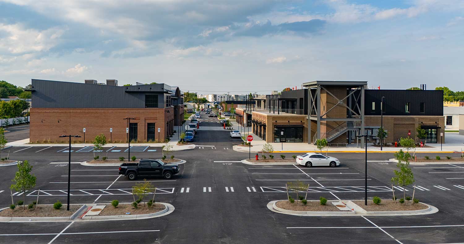 Meredith Construction, a Norfolk-based family business, spearheaded the project, partnering with Charlotte-based real estate group Clear Creek Brothers, LLC (CCB) to bring new life to this historic site. Work Program Architects (WPA) led the site planning, master planning, and design concepts, ensuring the development honored the area’s industrial past while fostering a dynamic, modern community.