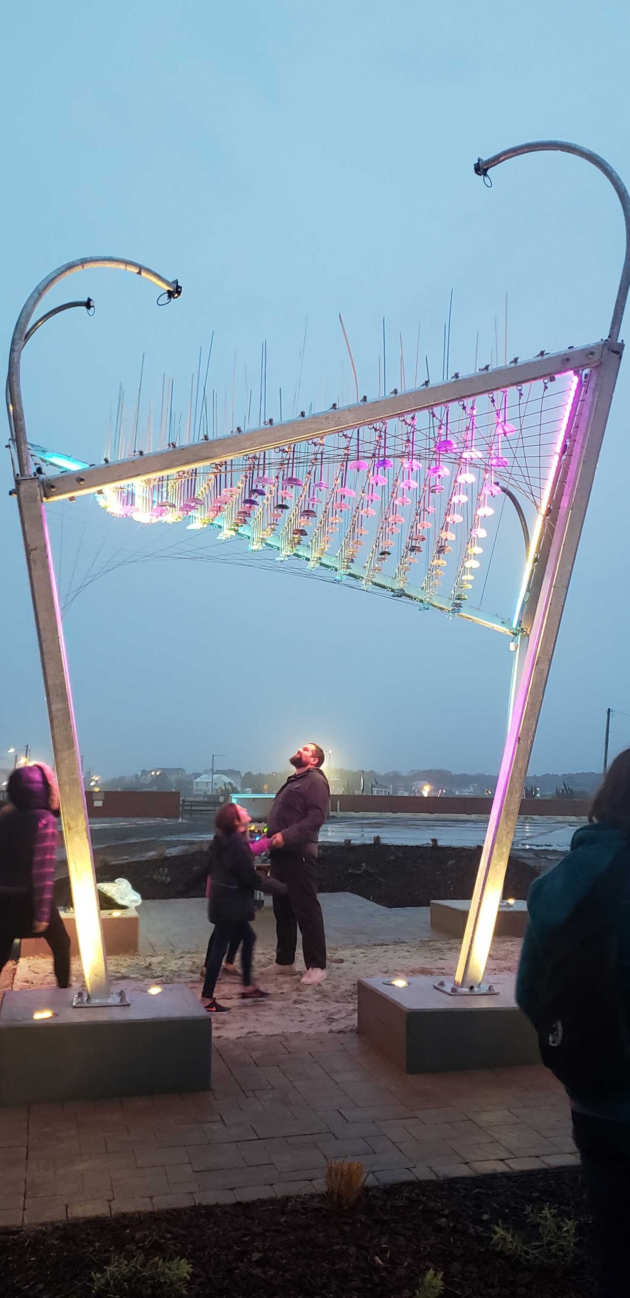 Work Program Architects, in partnership with Piece of Cake Productions and Rhiza A+D of Portland, Oregon, submitted the winning design for the installation based on a national call from the City of Virginia Beach Office of Cultural Affairs. The challenge was to create an exciting interactive piece to transform an empty lot into a vibrant new community meeting place.