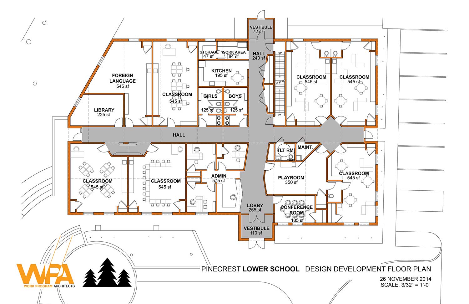 An innovative modular construction solution brings a fresh look to the Pinecrest campus and provides a much-needed Lower School facility, featuring six classrooms for preschoolers through first-graders, a language lab, library, playroom, and administrative offices. Classrooms for each grade level are clustered around central gathering spaces, fostering interaction among students and staff.