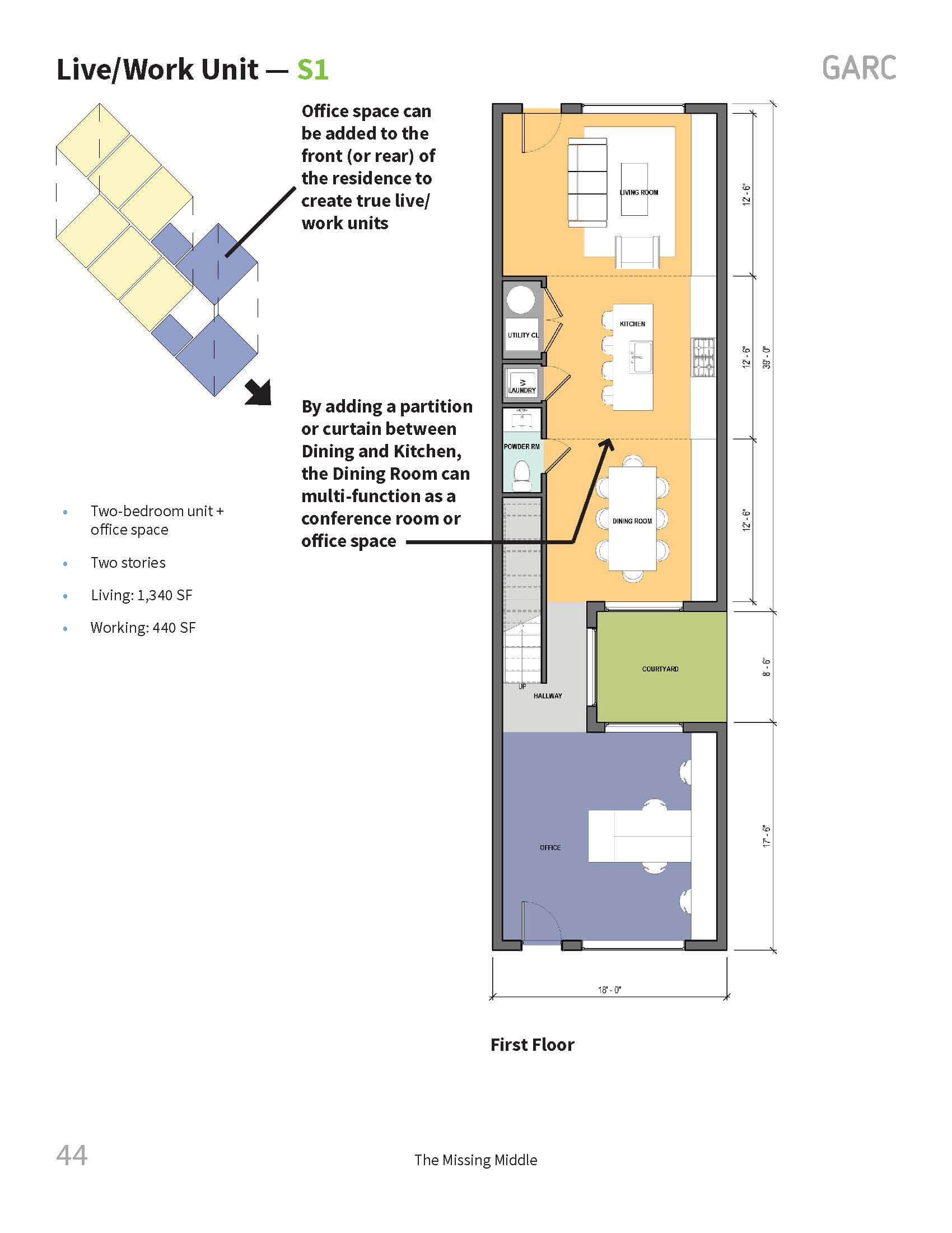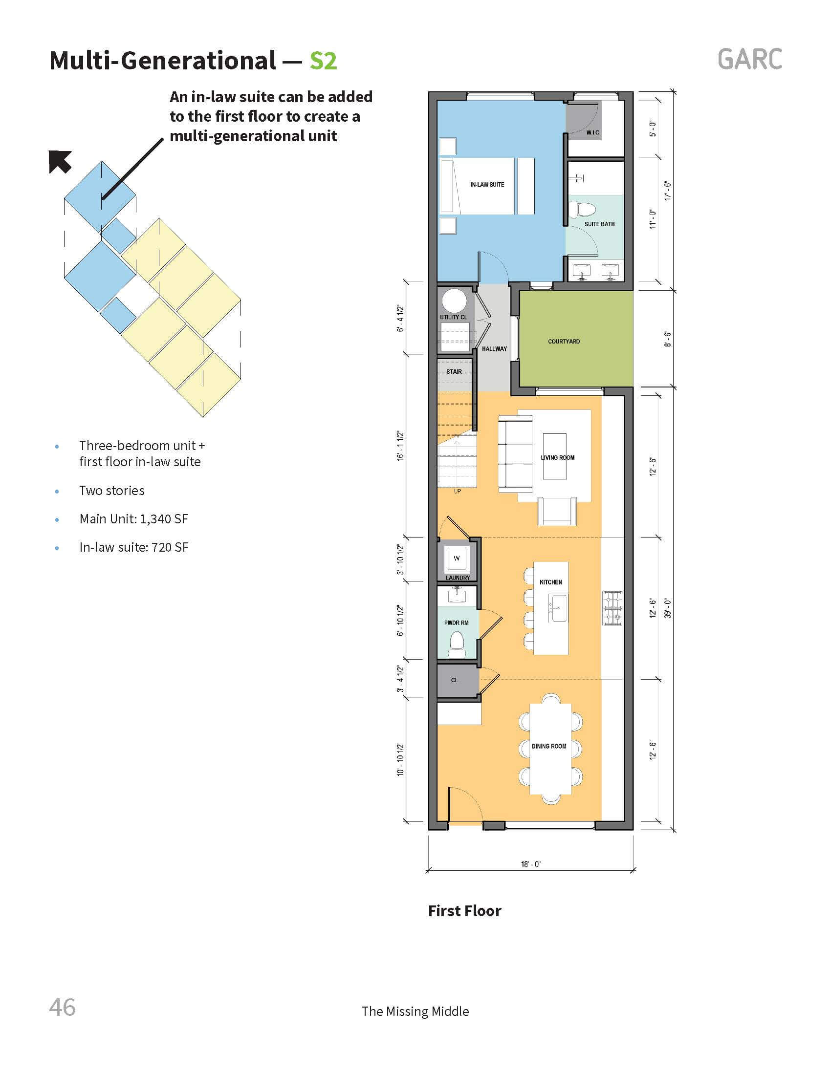 The pattern book provides both traditional layouts and modular components for units ranging from 600 to 2,000 square feet. These mix-and-match components allow developers to maximize unit diversity while ensuring context-driven solutions. Some layouts also support accessory dwelling units (ADUs)—ideal for families accommodating an elderly parent, a returning adult child, or a dedicated work-from-home space.