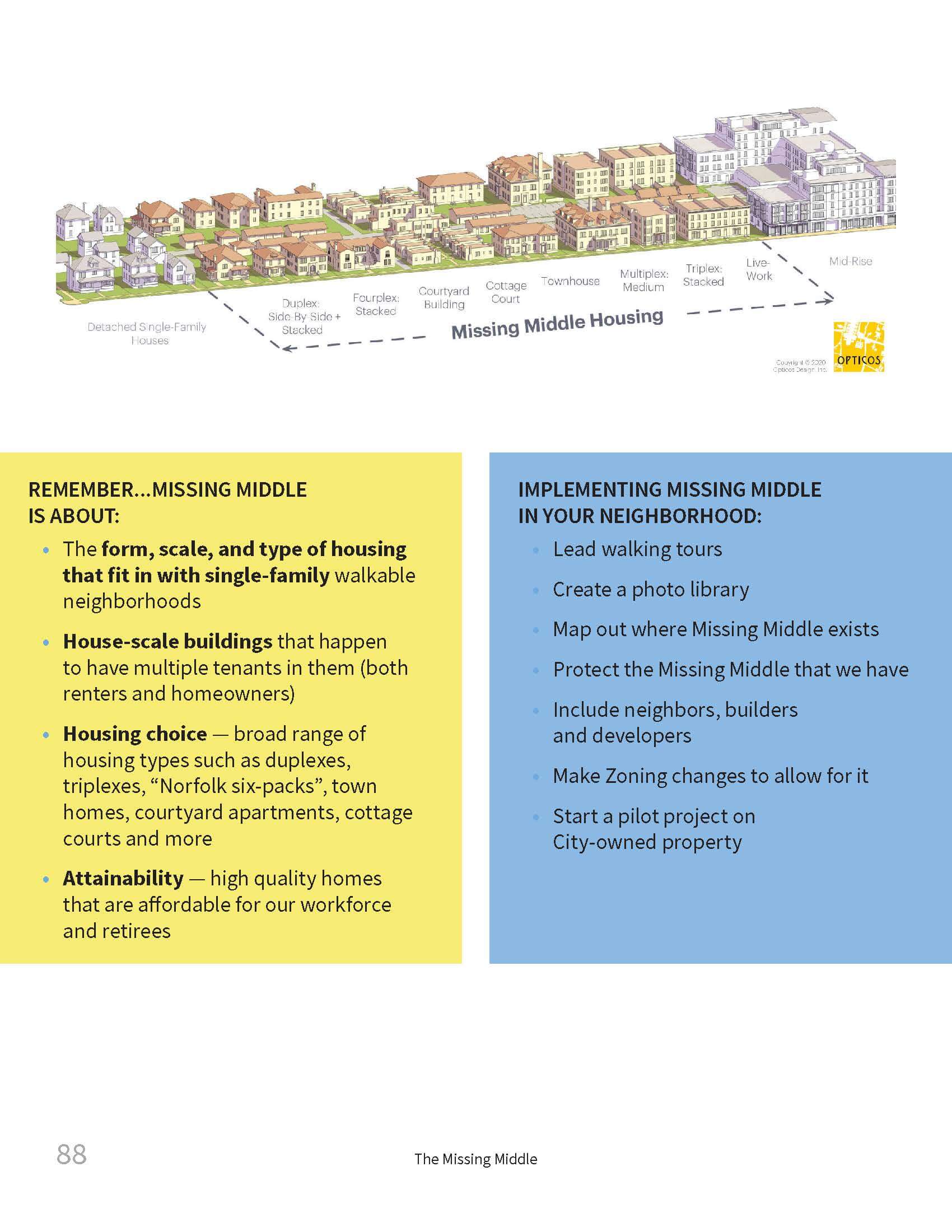 Missing Middle Housing borrows from the past to address today’s market-driven and environmental needs. It contributes to a rich neighborhood fabric while maintaining the flexibility to adapt to an evolving economic climate.