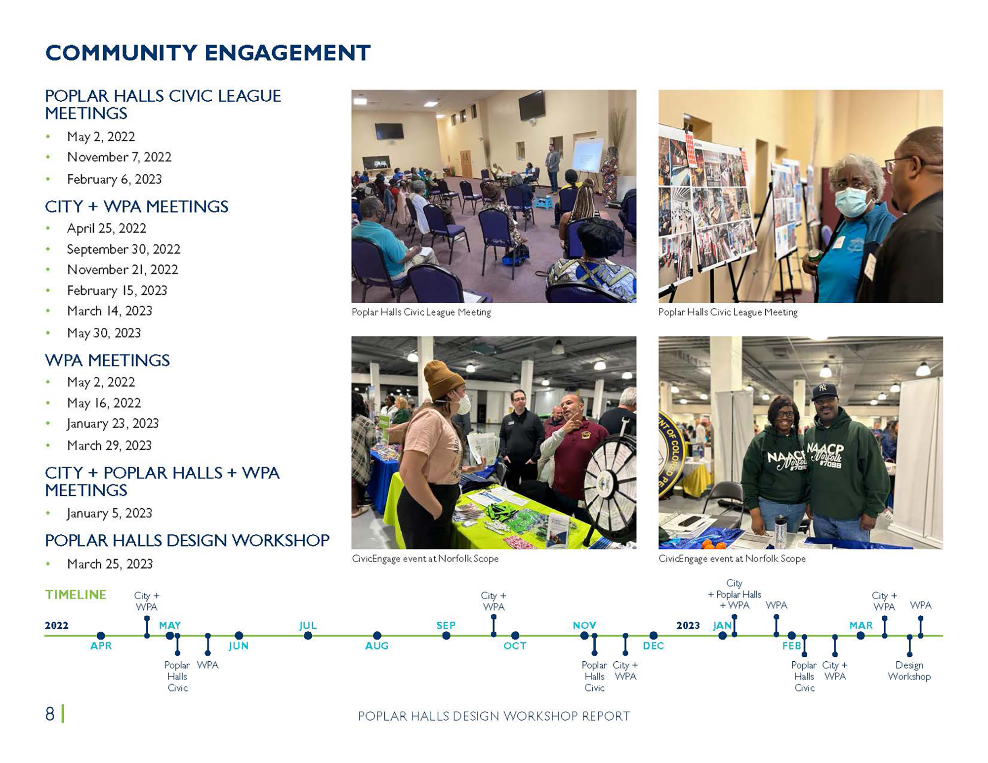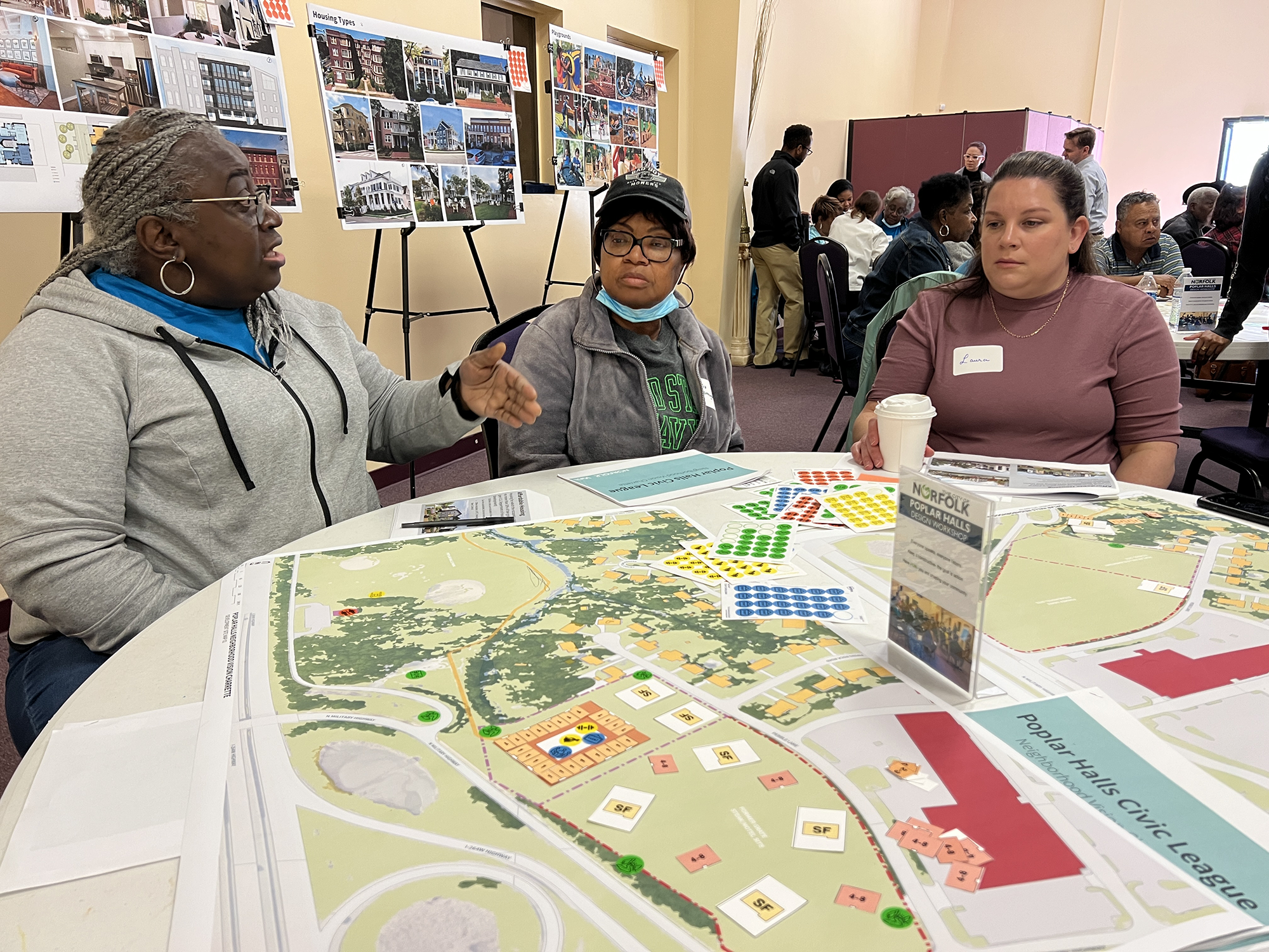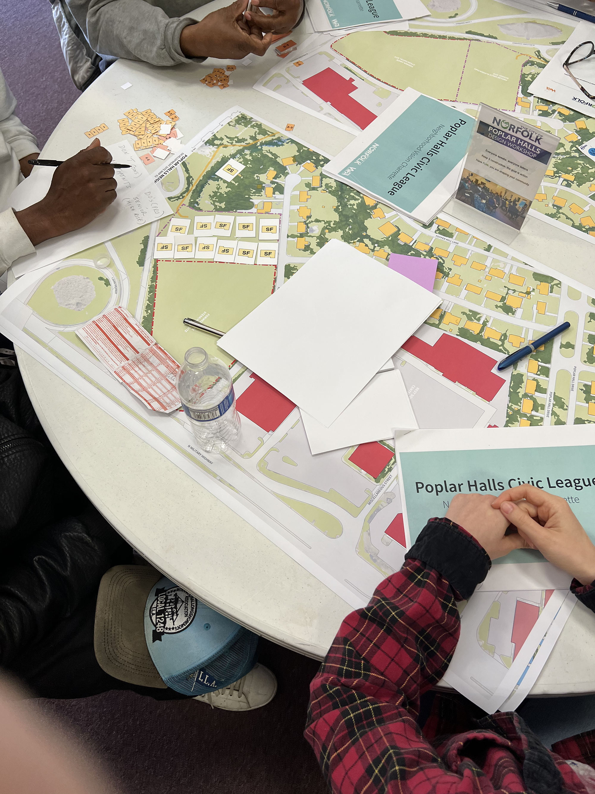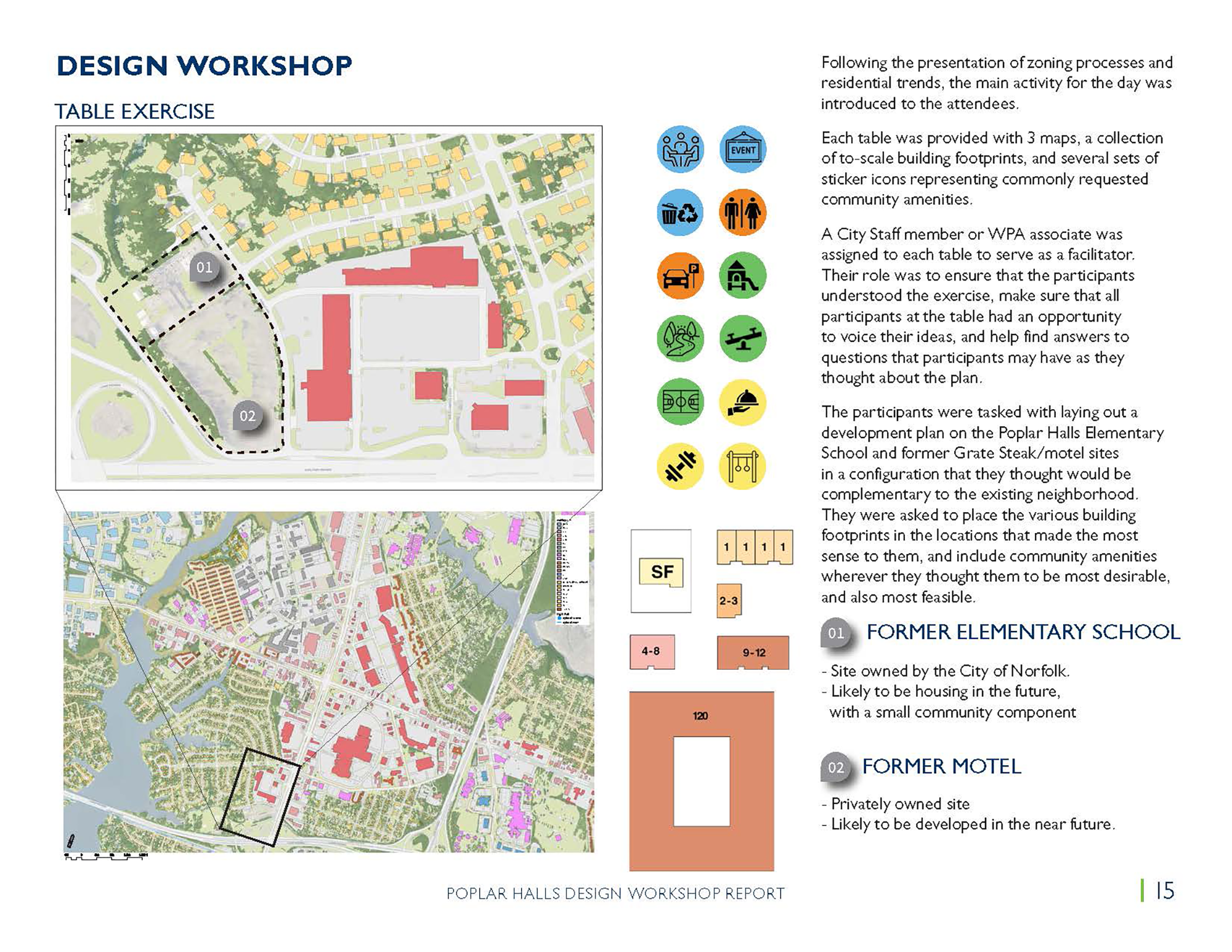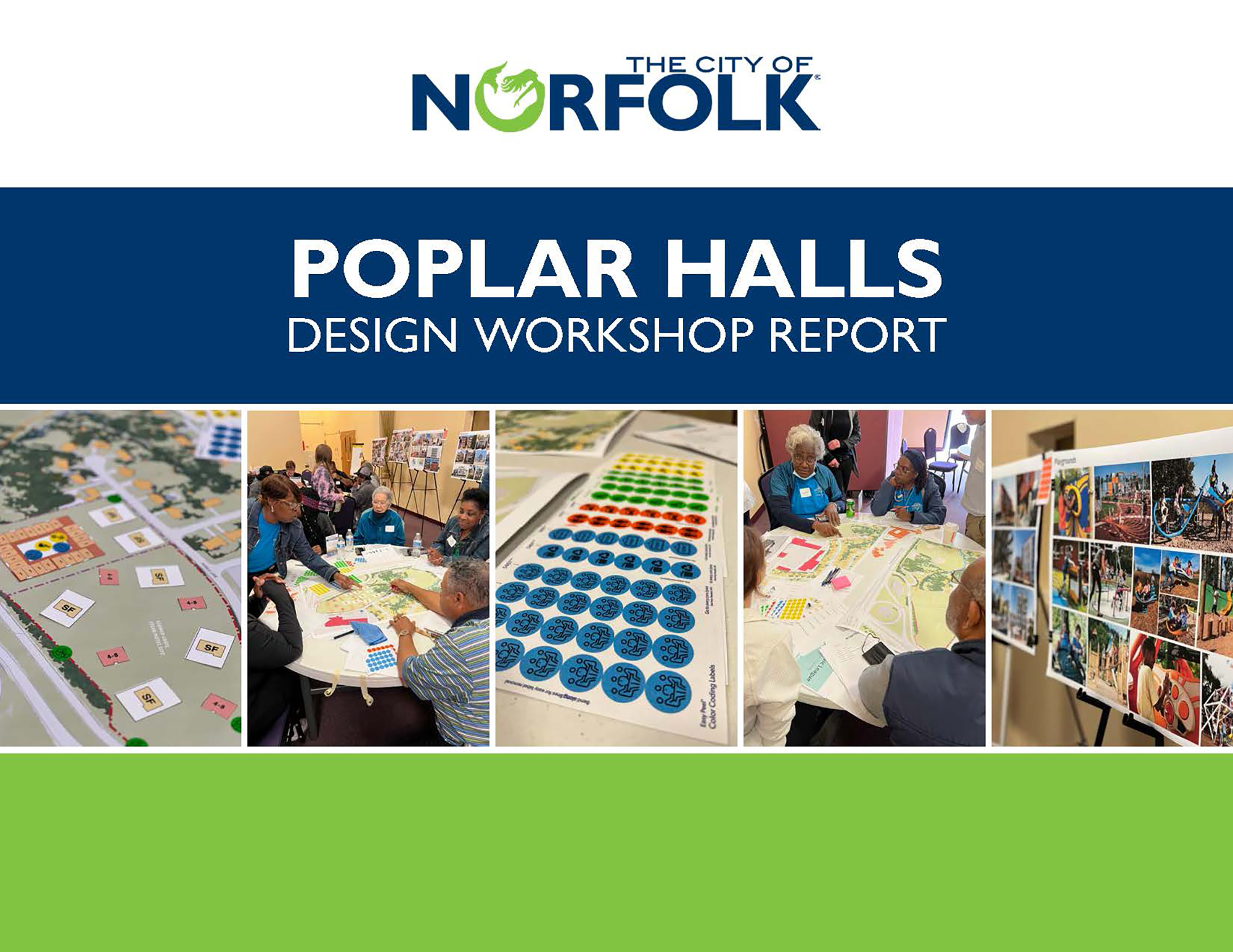WPA in collaboration with the City of Norfolk completed a design workshop for the Poplar Halls neighborhood. The initiative focused on two key sites: the former Grate Steak/motel property and the former Poplar Halls Elementary School location.