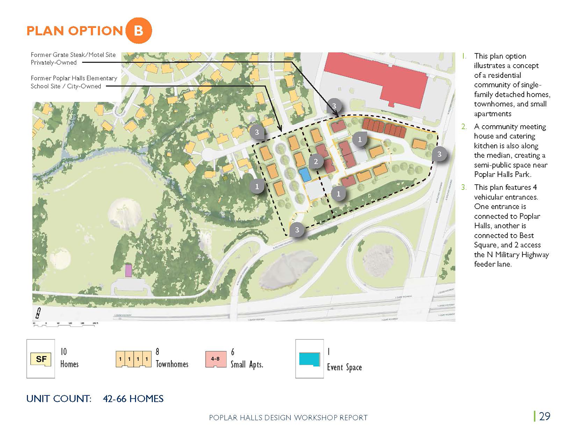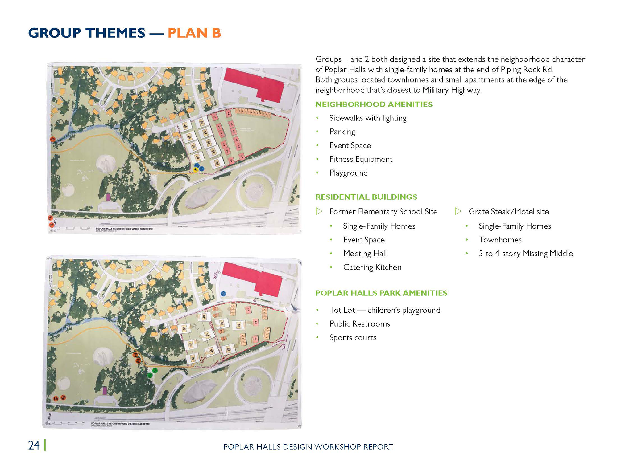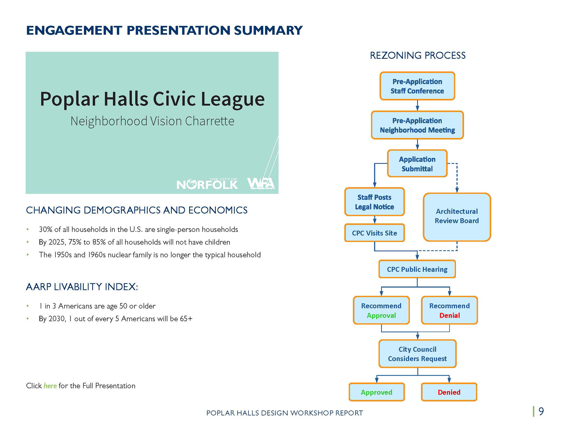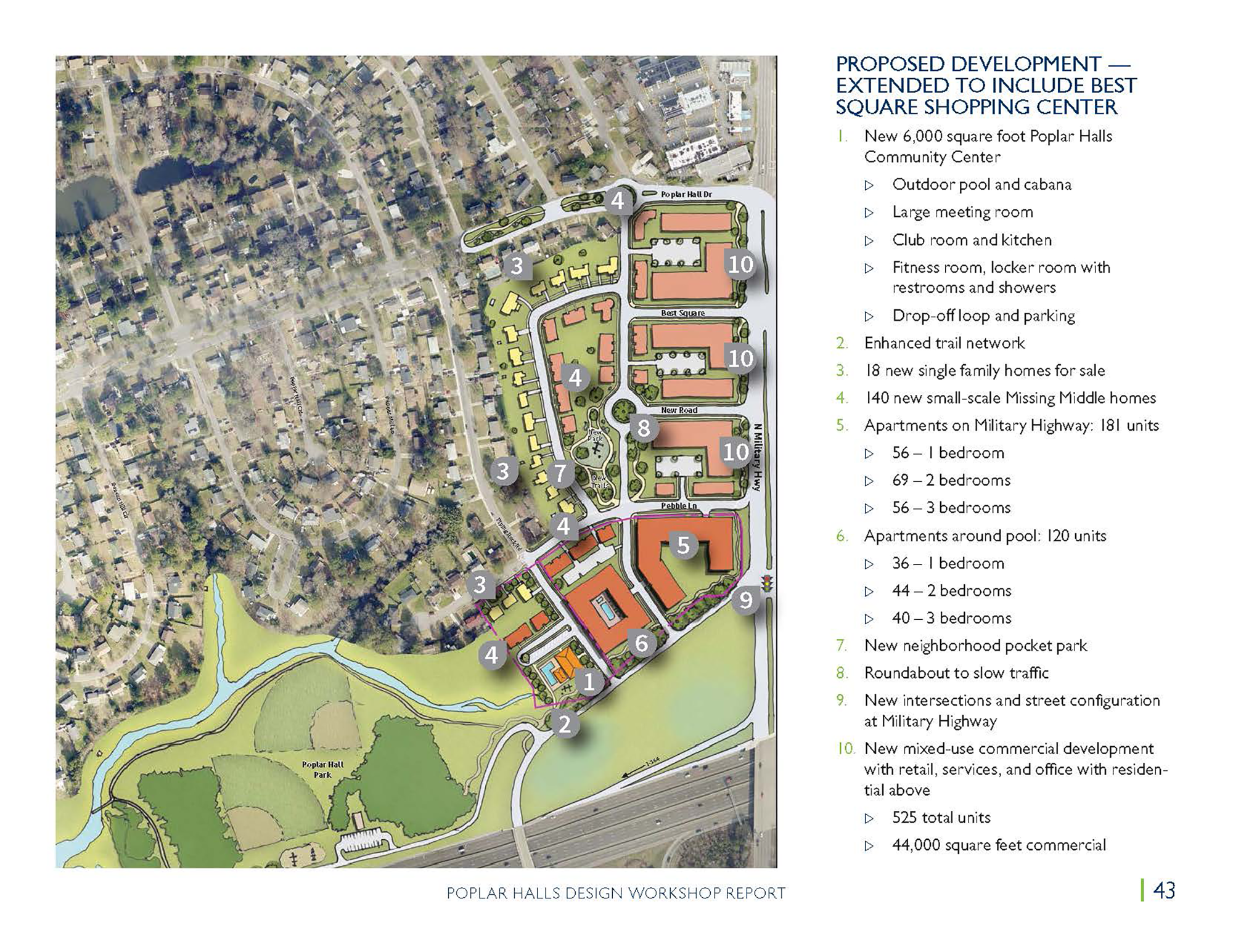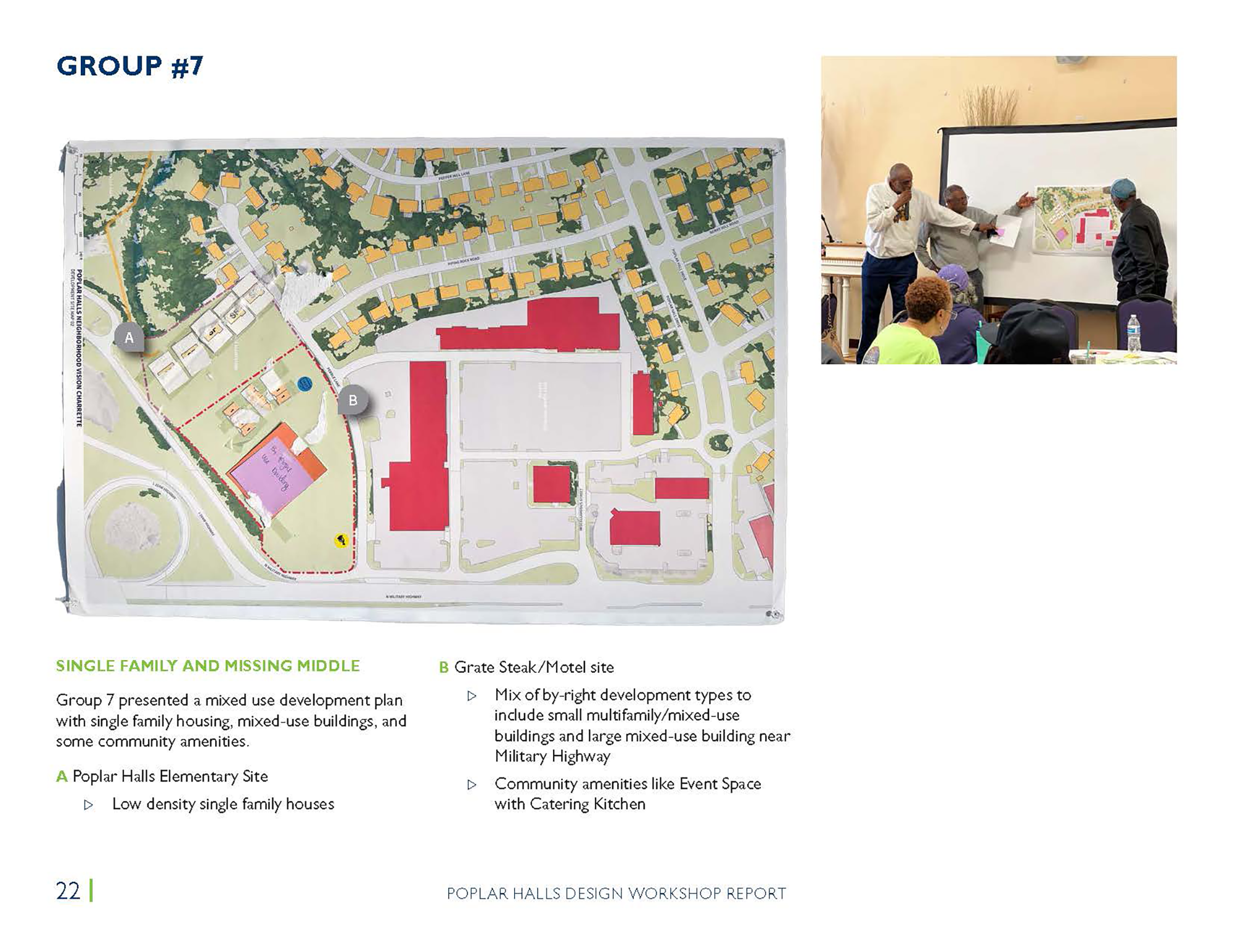 WPA in collaboration with the City of Norfolk completed a design workshop for the Poplar Halls neighborhood. The initiative focused on two key sites: the former Grate Steak/motel property and the former Poplar Halls Elementary School location.