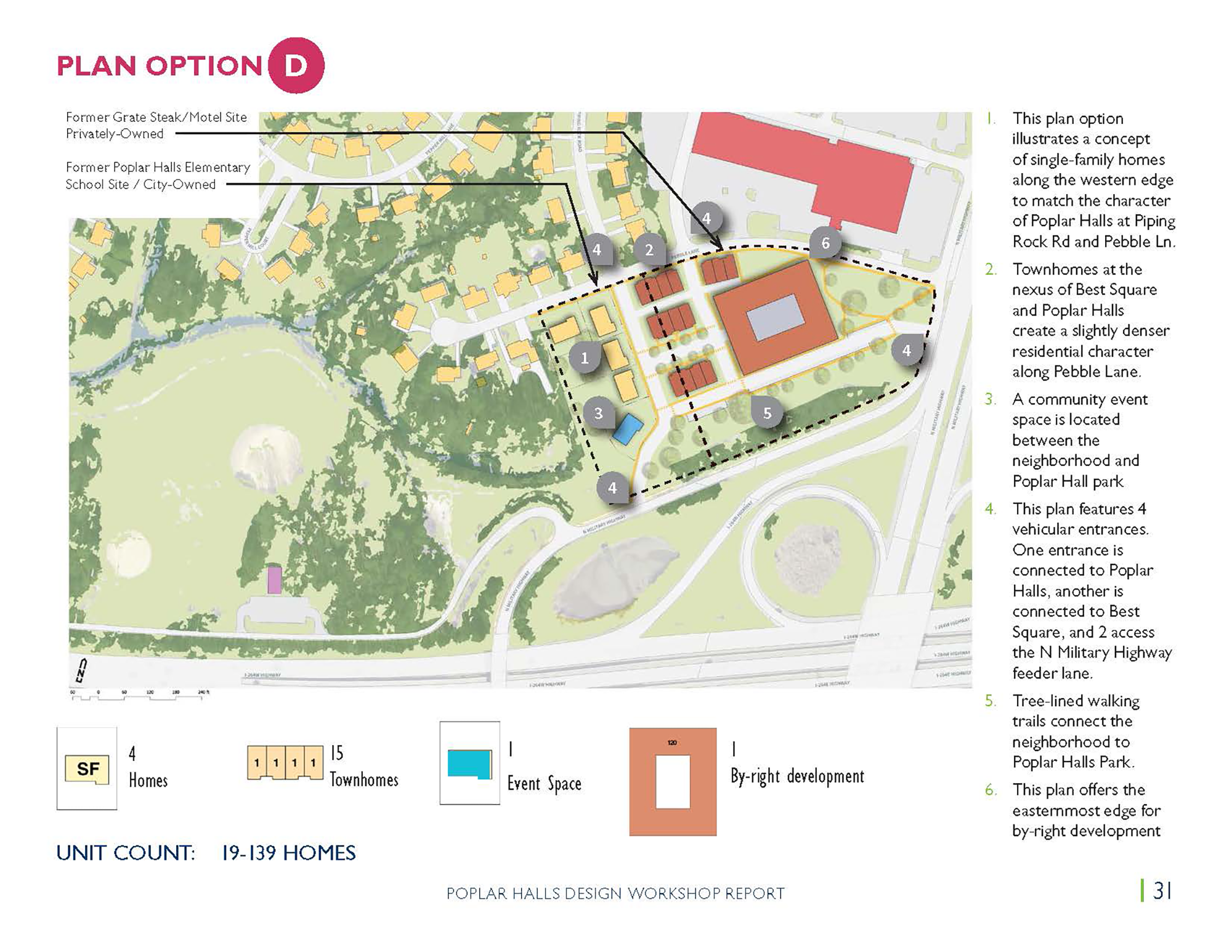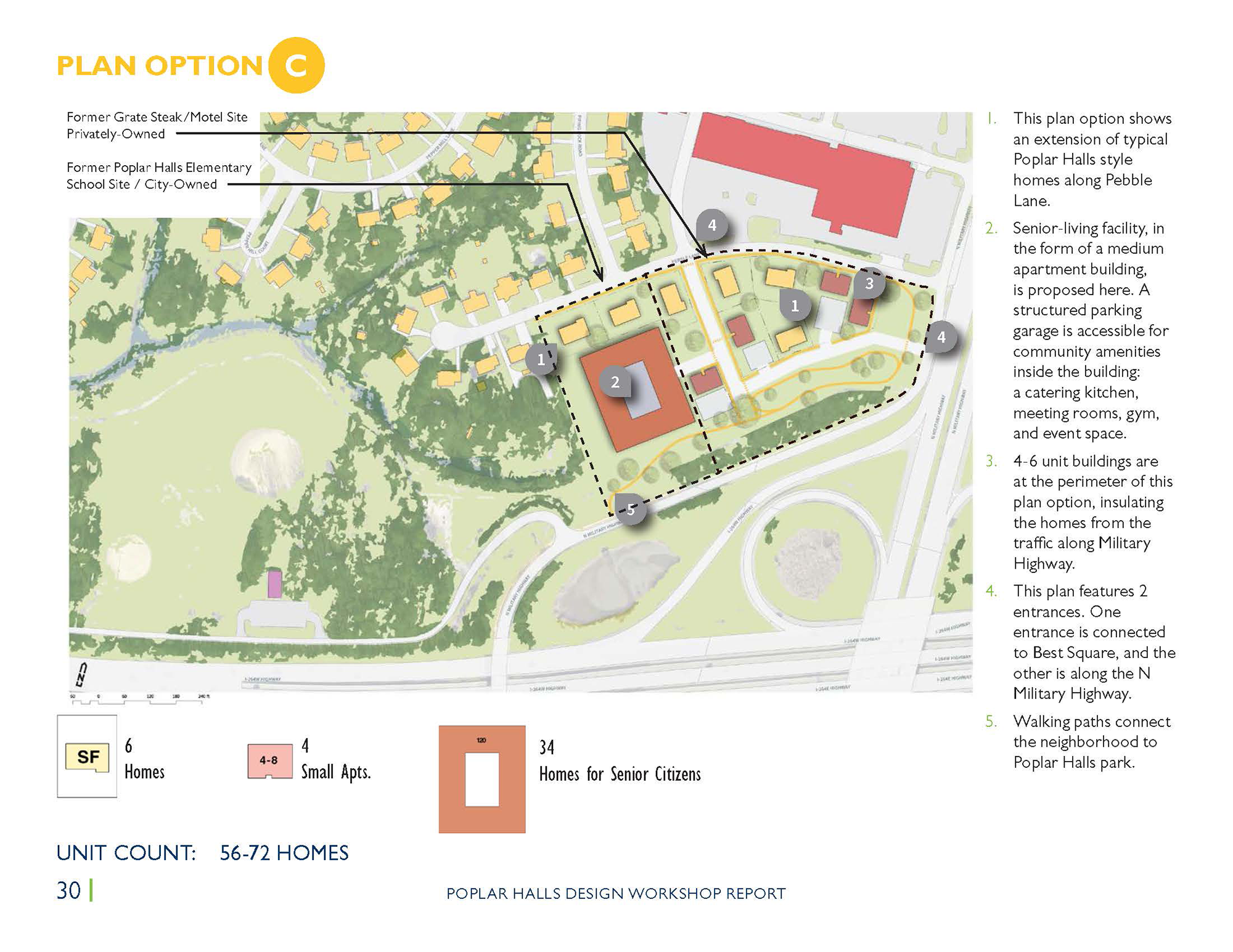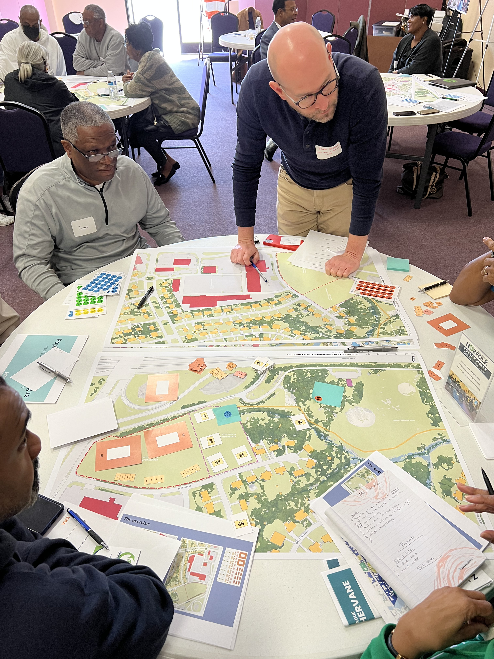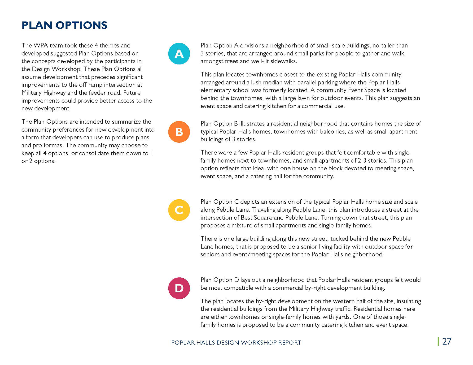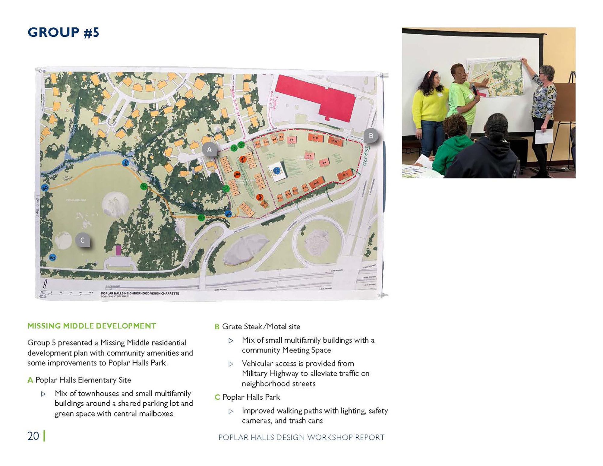 WPA in collaboration with the City of Norfolk completed a design workshop for the Poplar Halls neighborhood. The initiative focused on two key sites: the former Grate Steak/motel property and the former Poplar Halls Elementary School location.